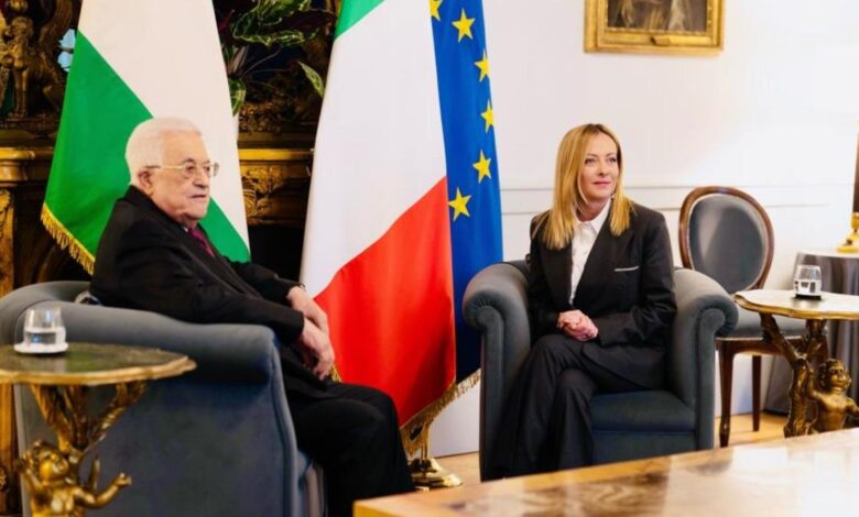 Görüşmede Filistin Devlet Başkanı Abbas, Başbakan Meloni'ye Filistin'deki son gerilimler ve sivillere yönelik saldırılar hakkında bilgi vererek, iki devletli çözümün korunması ve barışın tesisini sağlamak amacıyla Filistin'in İtalya tarafından devlet olarak tanınması yönündeki talebini İtalya'ya yineledi. Abbas ayrıca İtalya'dan güvenliği güçlendirme, Gazze'nin yeniden inşasını destekleme ve kalıcı barış için tüm taraflarla koordinasyonu sürdürme konusundaki rolünü sürdürmesini istedi.