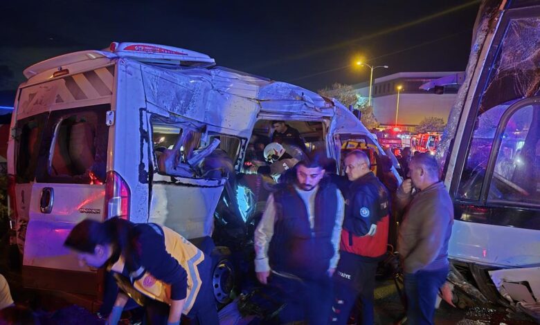 İzmir'de iki işçi servisinin çarpışması sonucu meydana gelen kazada 13 kişi yaralandı.