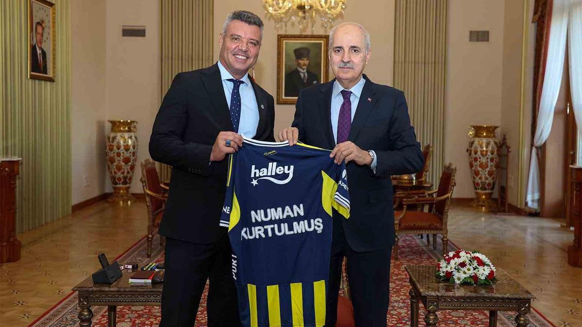 F.Bahçe Başkanı Sadettin Saran ve yönetim kurulu üyesi Taner Sönmezer, Türkiye Büyük Millet Meclisi (TBMM) Başkanı Numan Kurtulmuş'u ziyaret etti. Ziyaretin sonunda Başkan Saran, TBMM Başkanı Numan Kurtulmuş'a kendi adını taşıyan Fenerbahce formasını teslim ederken, Numan Kurtulmuş da bu nazik ziyaretinden dolayı kendisine teşekkür etti.